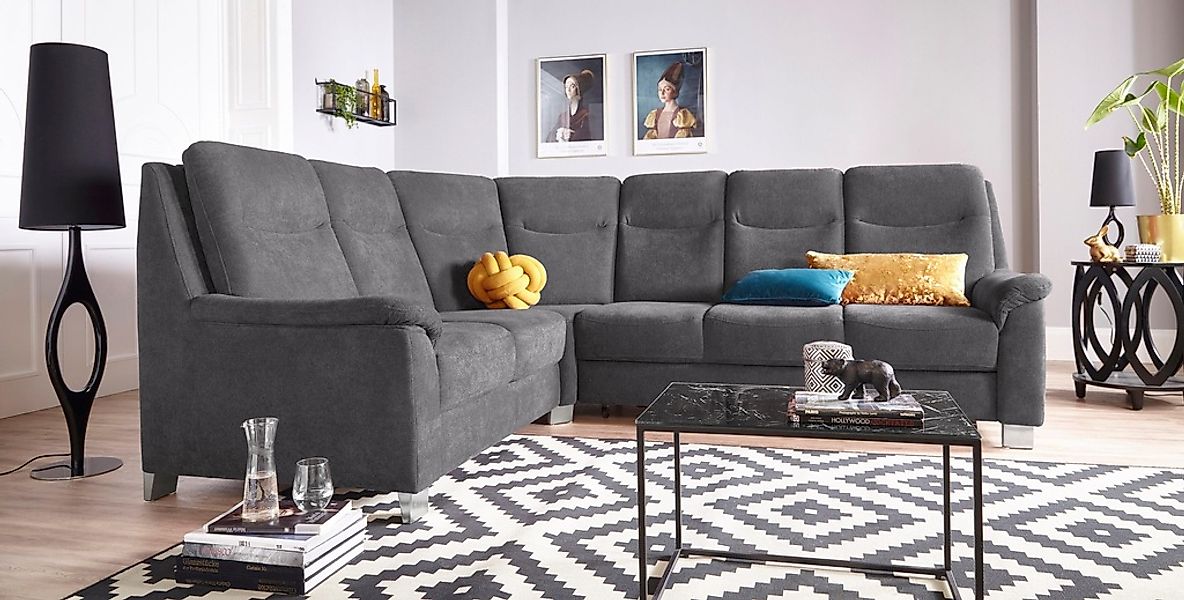 Wird zum Lieblingsplatz im Wohnzimmer: die Sit&More Polsterecke mit Federkern. Die schicke Eckcouch überzeugt mit einer großzügigen Sitz- und Liegefläche, auf der man es sich mit Freunden oder der Familie gemütlich machen kann. Durch die praktische Kopfteilverstellung kann die gewünschte Sitzposition ganz einfach variiert werden. Der lange Schenkel ist sowohl rechts als auch links bestellbar. So kann das Sofa problemlos in die bestehende Einrichtung integriert werden. Zudem ist es aus FSC®-zertifiziertem Holzwerkstoff gefertigt. Je nach Bedarf kann es auch mit Bettfunktion und einem Schubkasten bestellt werden. Die Polsterecke von Sit&More mit Federkern ist ein passendes Möbelstück für den gemütlichen Wohnbereich., Ausstattung & Funktionen: Stellvariante: langer Schenkel links, Art Polsterung: Federkern, Polyätherschaum-Polsterung, Wellenunterfederung, Art Verstellfunktion: manuell verstellbar, Ausstattung: Bettkasten, Art Stauraum: Bettkasten, Raumgewicht: 30 kg/m³, Anzahl Sitzflächen: 6,5 Stk., Maßangaben: Breite: 265 cm, Tiefe: 215 cm, Höhe: 104 cm, Sitzhöhe: 46 cm, Breite Sitzfläche: 206 cm, Tiefe Sitzfläche: 55 cm, Breite Armlehnen: 20 cm, Tiefe Armlehnen: 70 cm, Höhe Armlehnen: 58 cm, Breite Liegefläche: 204 cm, Länge Liegefläche: 122 cm, Höhe Füße: 9 cm, Bodenfreiheit: 9 cm, Belastbarkeit maximal: 660 kg, Belastbarkeit pro Sitzplatz: 110 kg, Hinweis Maßangaben: Alle Angaben sind ca.-Maße., Material: Bezug: Luxus-Microfaser, Abriebfestigkeit Bezug: 4 (gut), Pillingbildung Bezug: 4 (gering), Material Untergestell: Holzwerkstoff, Material Füße: Metall, Information Materialzusammensetzung: Kunstleder SOFTLUX®, Luxus-Microfaser (90% Polyester, 10% Polyamid), Flachgewebe (100% Polyester), Scheuerbeständigkeit Bezug: 40.000 Scheuertouren, Farbe: Farbbezeichnung: schlamm, Farbe Korpus: schlamm, Allgemein: Ausführung: mit Bettfunktion, mit Bettkasten, mit Kopfteilverstellung, Lieferung & Montage: Lieferzustand: teilmontiert, nur einhaken und Füße montieren, Hinweis Lieferumfang: ohne Zierkissen, Hinweise: Pflegehinweise: Bitte beachten Sie die Pflegehinweise gemäß dem beiliegenden Produkt- und Materialpass., Qualitätssiegel: Das Goldene M, Gütesiegel der DGM
