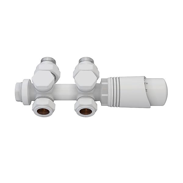 SONNI 2 in 1 Design Multiblock Heizkörper inkl. Thermotstat - Anthrazit / Weiß / Chrom Unser hochwertiges Multiblock Set verfügt über ein schlichtes und elegantes Design. Nach einer einfachen Montage und Einstellung können Sie schnell Wärme und Behaglichkeit in Ihren Wohnräumen genießen. [Produkt Detail] Farbe: Anthrazit / Weiß / Chrom Material: MessingZweirohrarmatur und MittelanschlussGewinde der Heizkörperanschlüsse G 1/2",Gewinde der Rohranschlüsse G 3/4",Gewindeanschluss des Thermostatkopfs: M30x1,5mmDer Thermostatkopf lässt sich einfach drehen und regelt einwandfrei.Eck- und Durchgangsausführung: verwendbar für Rohre aus der Wand oder aus dem BodenAchtung! Beim Öffnen des maximalen Wasserdurchflusses funktioniert die Temperaturregelung nicht. [Technische Daten] Betriebsform: WarmwasserBetriebsdruck bis 10 bar und maximaler Druckunterschied: 0,6 barMax. Betriebstemperatur: 100°CSollwertbereich: ca. 12°C bis 28°CSkalenkappe auf dem Thermostatkopf mit Nullstellung, siehe Tabelle untenZahlenskala{ Raumtemperatur (ca.) } : 1( 12°C) >, 2( 16°C) >, 3( 20°C) >,4 ( 24°C) >,5 ( 28°C) >, Max (...) [Lieferumfang] 1 x Ventil +, ThermostatAbmessung der Verpackung: 180x150x70 (mm) SONNI ist eine rapide wachsende Marke für Bad- und Wohnkultur in Nordrhein-Westfalen. Wir legen großen Wert auf die Qualität unserer Produkte. In vielen Bereichen setzt SONNI ausschließlich auf reizvolle Produkte, die durch herausragendes Design und perfekte Funktionalität überzeugen.