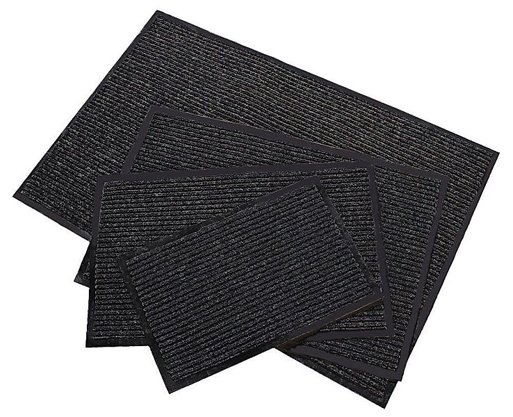 Schmutzfangmatte in schwarz - 90 x 60 cm - Türmatte Fußmatte für Innen und Außen Türmatte ca. 90 x 60 cm in schwarz für Innen und Außen geeignet Artikeldaten: Die Größe beträgt ca. 90 cm x 60 cm (Breite x Tiefe) Material: Polyester / PVC (Unterseite) Farbe: schwarz Oberflächenstruktur sorgt für große Aufnahme von Schmutz und Feuchtigkeit Rückseite aus Gummi verhindert Wegrutschen der Matte UV-beständig - für den Innen- und Außenbereich geeignet strapazierfähig, pflegeleicht und schnelltrocknend Lieferumfang: 1x Schmutzfangmatte schwarz 90 x 60 cm