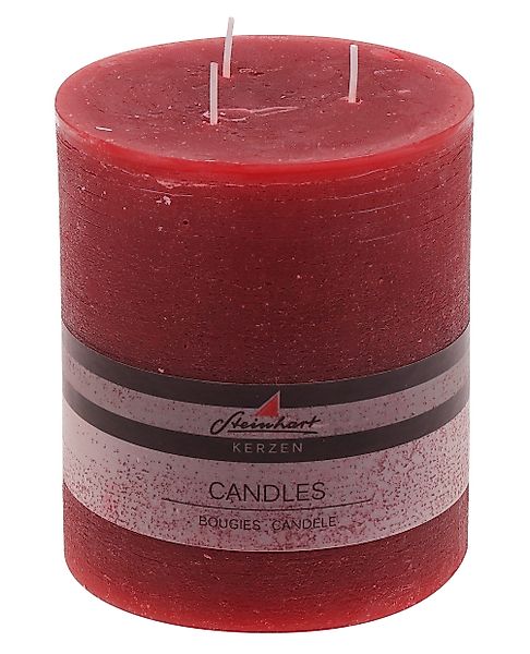 Durchgefärbte Stumpenkerzen 3-flammig in Raureif Altrot (140/120 mm) von Steinhart Kerzen, hergestellt in Deutschland und geprüft nach RAL-Kerzengüte-Qualität. Die charakteristische, rustikale Oberfläche überzeugt durch ihre schlichte und zugleich moderne Ästhetik. Mit einer beeindruckenden Brenndauer von 84 Stunden sind diese Kerzen ideal, um stimmungsvolle Akzente in jedem Raum zu setzen. Steinhart Kerzen Raufreif 3-Docht Stumpenkerzen mit ihrer charakteristischen, rustikalen Oberfäche überzeugen durch ihre schlichte und zugleich moderne Art. - Kerzenform: Stumpenkerze - Kerzenart: durchgefärbte Kerze - Kerzenoberfläche: Rustikale Kerzenoberfläche - Kerzenwachs: 100 % Paraffin-Wachs - Kerzenqualität: Hergestellt in RAL-Kerzengüte Qualität - Anzahl Dochte: 3 Dochte - Farbe Kerzenwachs: Altrot - Kerzengröße (H x D): 140 x Ø 120 mm - Brenndauer in Stunden: 84 Stunden - Anzahl Kerzen je Verpackungseinheit: 1 Stück - Land Kerzenherstellung: Deutschland - Duft: ohne Duft