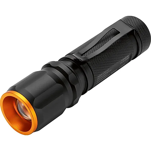 Die silberne Taschenlampe mit Aluminiumgehäuse hat eine LED. Sie strahlt mit einer Leuchtweite von 60 m und einem Lichtstrom von 70 Lm. Die Leuchtdauer beträgt 100.000 Stunden. Im Lieferumfang sind 3 AAA Micro-Batterien (1,5 V) enthalten.