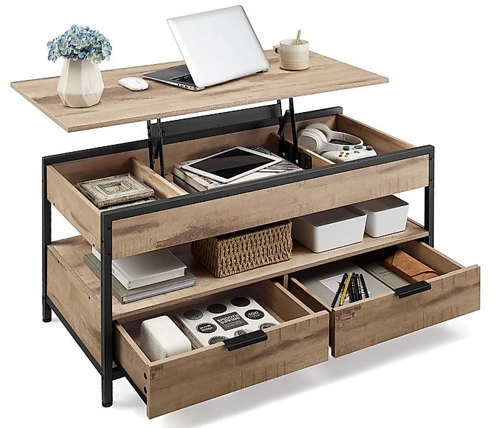 Produktdetails: - Farbe: Vintagebraun-Tintenschwarz/Anthrazitgrau-Tintenschwarz/Kamelbraun-Tintenschwarz - Materialien: Holzspanplatte, Stahl - Größe: 50 x 100 cm (T x B) - Höhe: 48-63 cm - Gewicht: 25,6 kg - Max. statische Belastbarkeit der Tischplatte im angehobenen Zustand: 20 kg - Max. statische Belastbarkeit insgesamt: 136 kg Lieferumfang: - 1 x Couchtisch - 1 x Zubehörpaket - 1 x Anleitung VASAGLE Hinweise: - Die max. statische Belastbarkeit der Tischplatte im angehobenen Zustand beträgt 20 kg. Bitte überschreiten Sie dieses Maximalgewicht nicht.