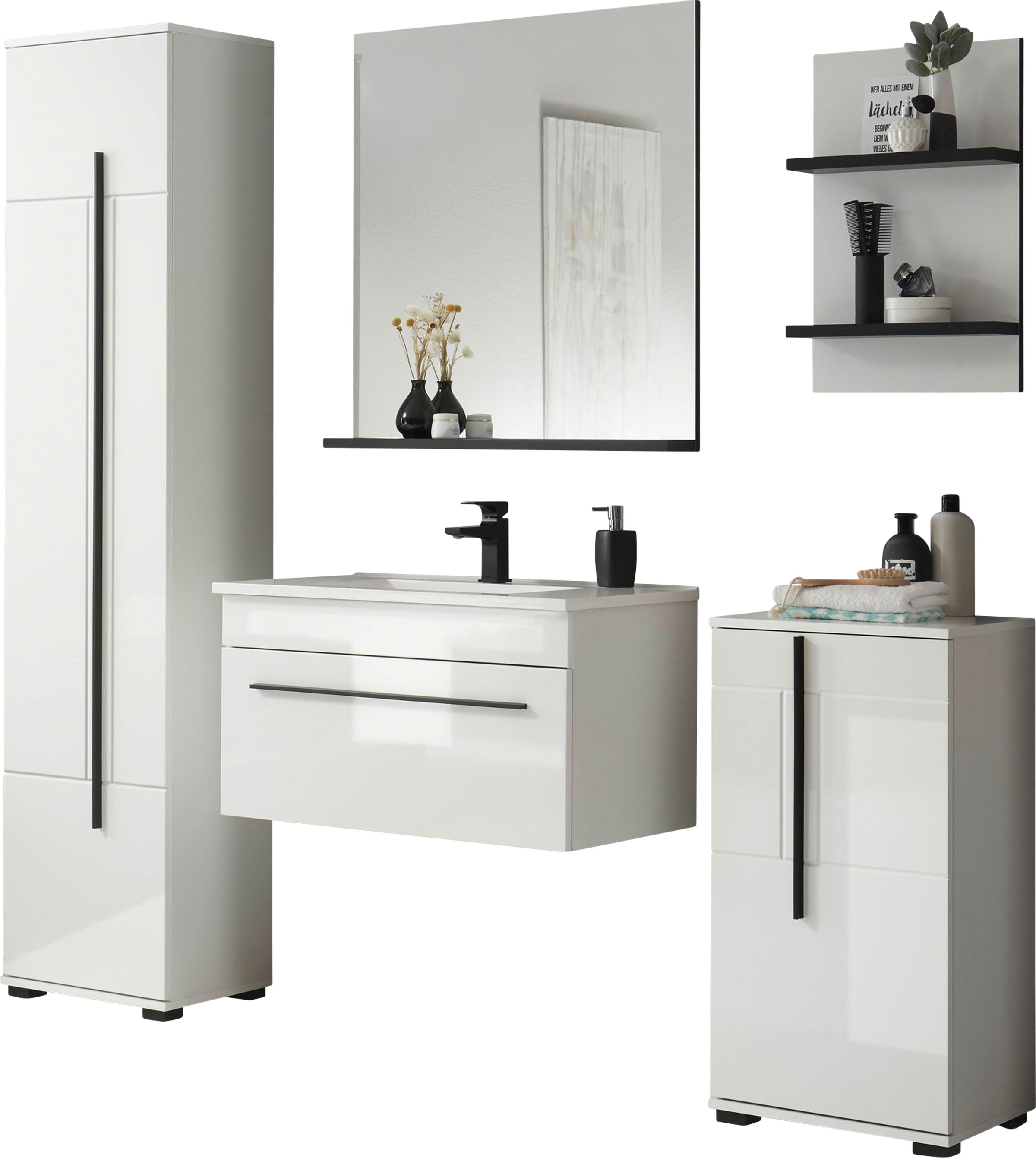 Vicco Badmöbel-Set Senyo Anthrazit/Goldkraft Eiche 5 Teile mit Regalen