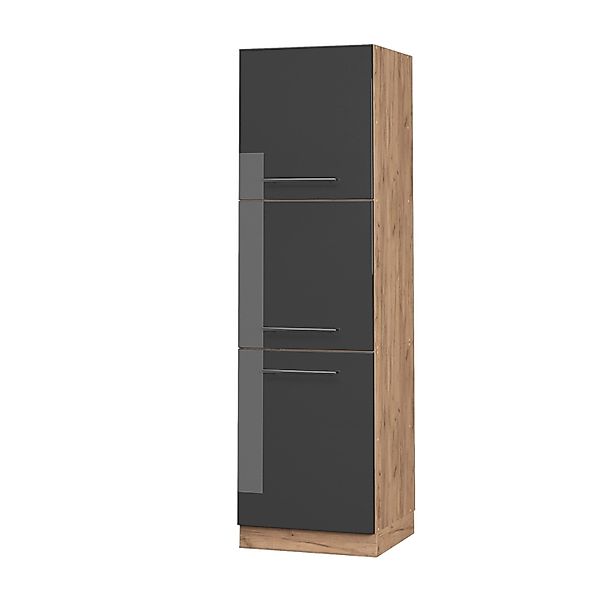 Vicco Herdumbauschrank Fame-Line Anthrazit Hochglanz/Goldkraft Eiche 60 cm