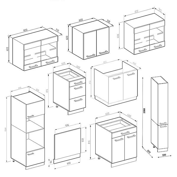 Vicco R-Line Küchenzeile Weiß Hochglanz/Weiß 350 cm mit Hochschrankohne Arbeitsplatte ohne E-Geräteobi.de