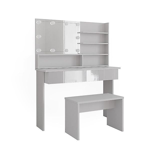 Vicco Schminktisch Azur Weiß/Weiß Hochglanz 120 cm mit Spiegelregal Bank & LED-Beleuchtungobi.de