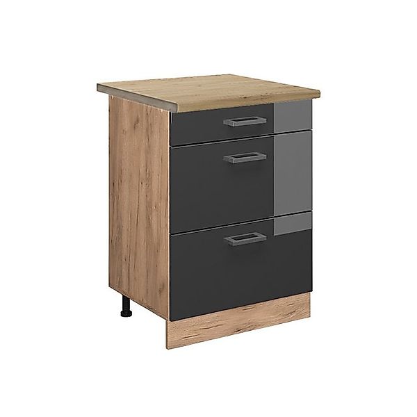 Vicco Küchenunterschrank R-Line Anthrazit Hochglanz/Goldkraft Eiche 60 cm mit Schubladen AP Eicheobi.de